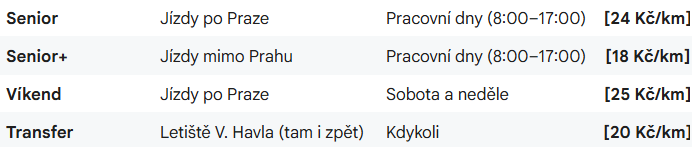 🚖 Ceník a přehled jízdních tarifů